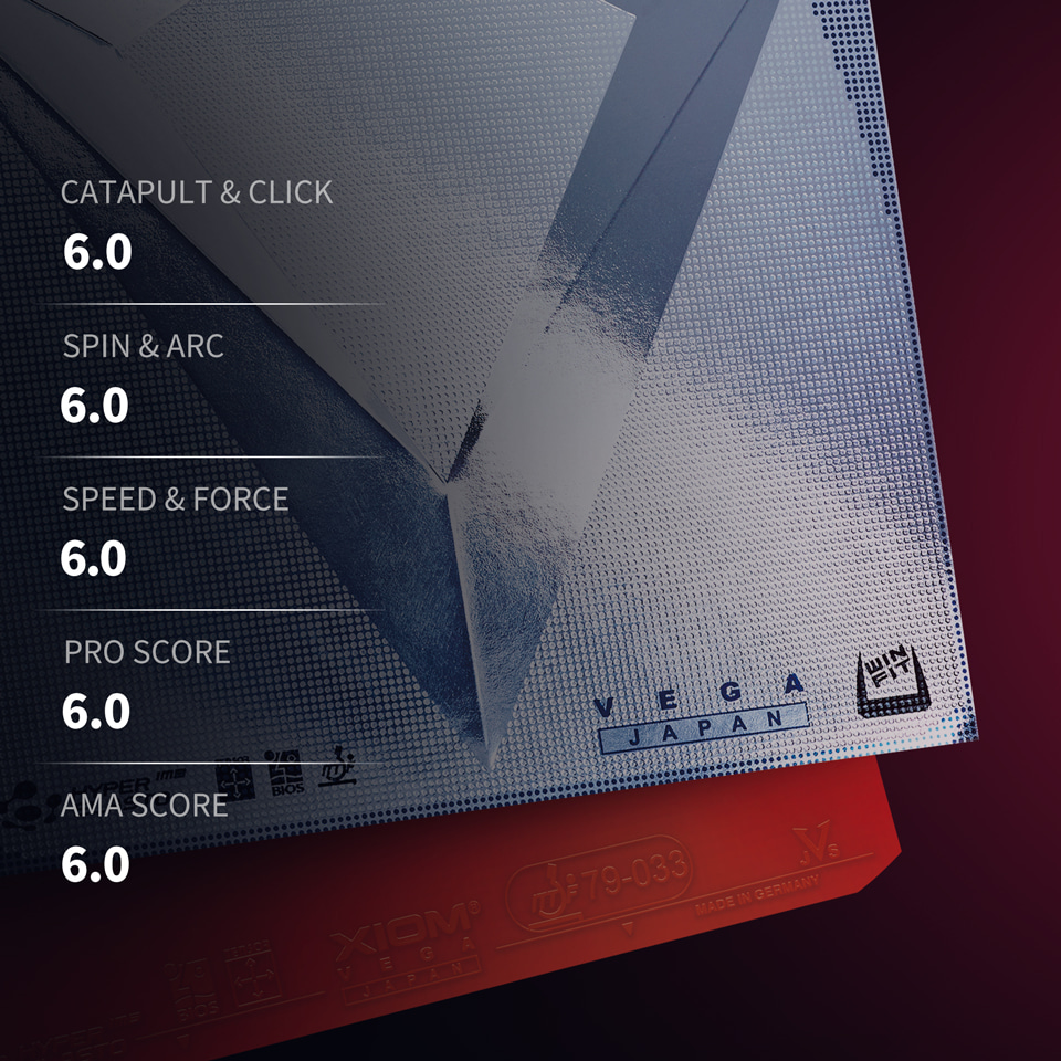 Next generation VEGA special for Japanese playing style. Excellent offensive/defense balance with deeper ball clicking and good control.